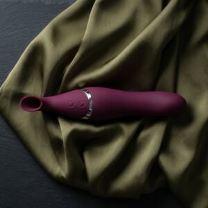 Most double-ended products offer two versions of the same thing. The Shegasm Intense 2 in 1 Clit Stimulator offers two genuinely different functions on a single handle. One end is a precision clitoral suction tip — 0.5 inches in diameter, built to surround and draw on the clitoris with 12 levels of pressurized suction that escalate from a gentle pull to an insistent, focused draw. The other end is a smooth, curved vibrating shaft — 1.75 inches at maximum diameter with a g-spot curve that targets the anterior wall on insertion — with its own 12 levels of vibration intensity and pattern. Neither end is an afterthought.